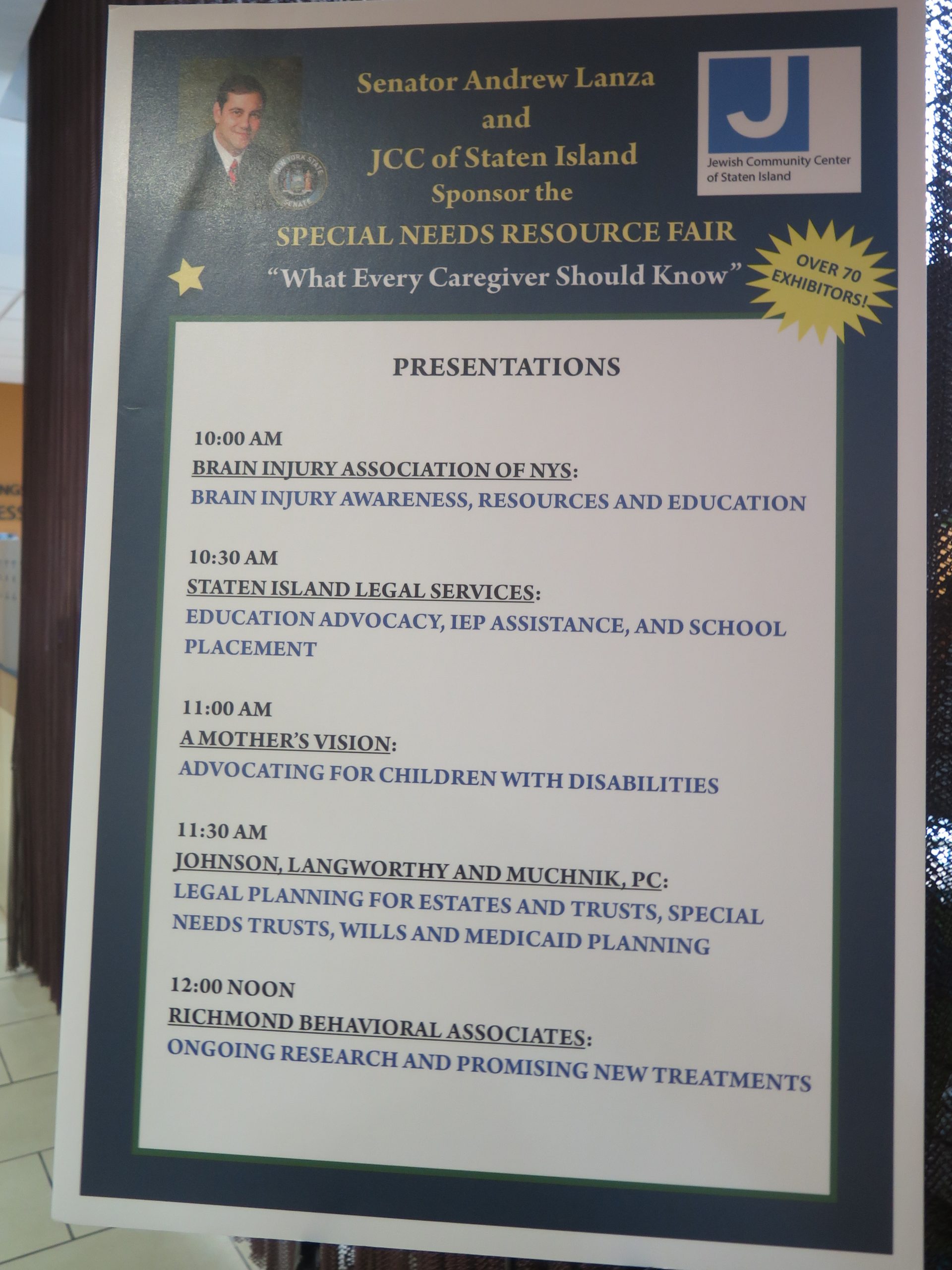 N.Y.S. Senator Andrew J. Lanza held his 11th Special Needs Fair on the theme of “What Every Caregiver Should Know.” The May 17th event at the Jewish Community Center of Manor Road, brought together different schools, day programs, foundations and city agencies, offering day habilitation, transportation options, health, education and more.